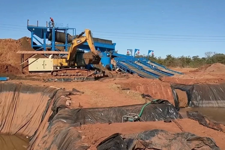 Impianto mobile di estrazione dell'oro: è l'attrezzatura principale per l'estrazione dell'oro su giacimenti terrestri, caratterizzata da un trasferimento flessibile. Integra le funzioni dell'intero processo di alimentazione, vagliatura e separazione dell'oro. Dopo che le pietre sono state rimosse dal vaglio a tamburo, il liquame minerale viene quindi separato da apparecchiature quali chiuse e concentratori centrifughi.